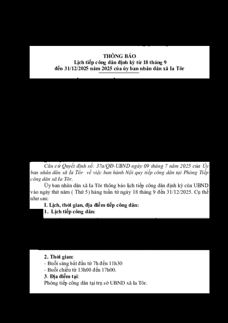 Lịch tiếp công dân định kỳ từ ngày 18 tháng 9 đến ngày 31 tháng 12 năm 2025 của Chủ tịch UBND xã Ia Tôr