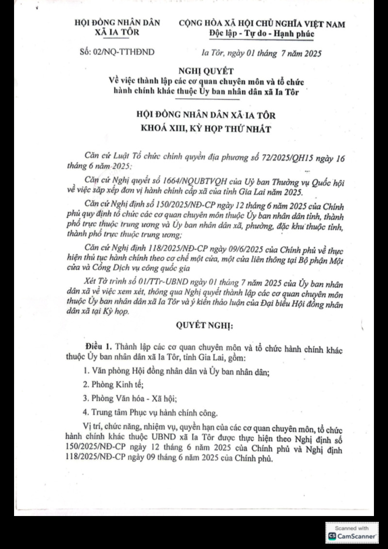 Nghị quyết thành lập các cơ quan chuyên môn và tổ chức hành chính khác thuộc UBND xã Ia Tôr